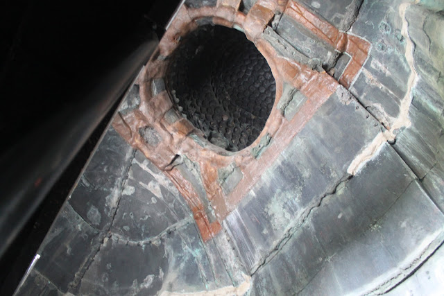 You can clearly see where plastic has been added to support the neck, and the steel reinforcements added near the base, but besides that it's mostly original materials. I wondered if a band had ever played inside.